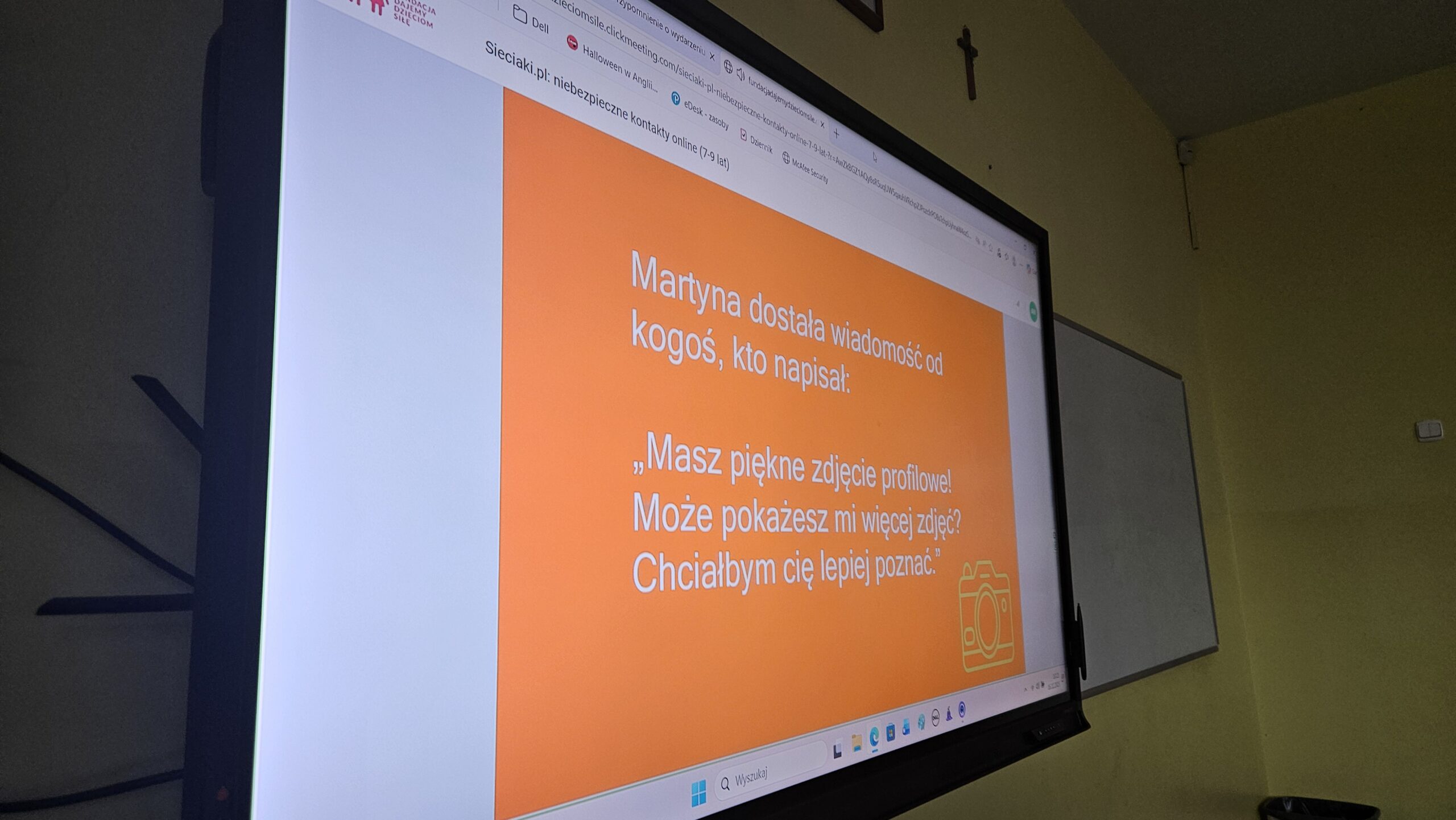 We wtorek, klasy I – IV wzięły udział w wydarzeniu organizowanym przez Fundację Dajemy Dzieciom Siłę, jakim była profilaktyczna lekcja “Sieciaki.pl: niebezpieczne kontakty online”.💻📱