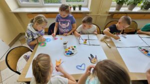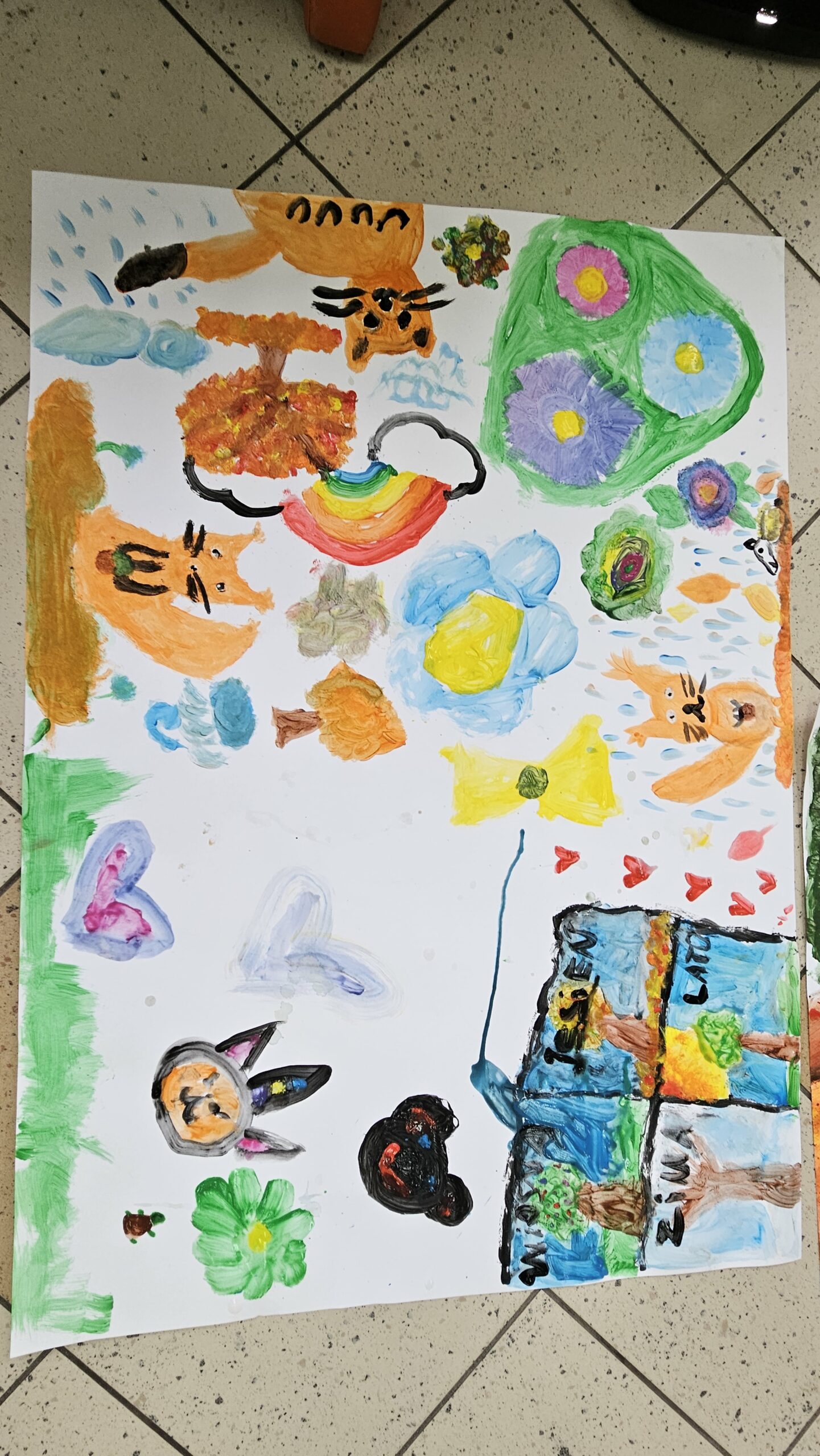 Dzieci miały możliwość wyrażać swoje myśli i emocje za pomocą ruchów pędzla. Nie zabrakło również słów- swobodnych rozmów, podczas których wzmacniały się więzi między dziećmi, współpraca oraz wzajemny szacunek.🫶 Terapeutyczne Wtorki okazały się nie tylko oddziaływaniem poprzez sztukę, ale również świetnym miejscem do zrealizowania ogólnopolskiej inicjatywy MEN “Tydzień Budowania Relacji”.🫂