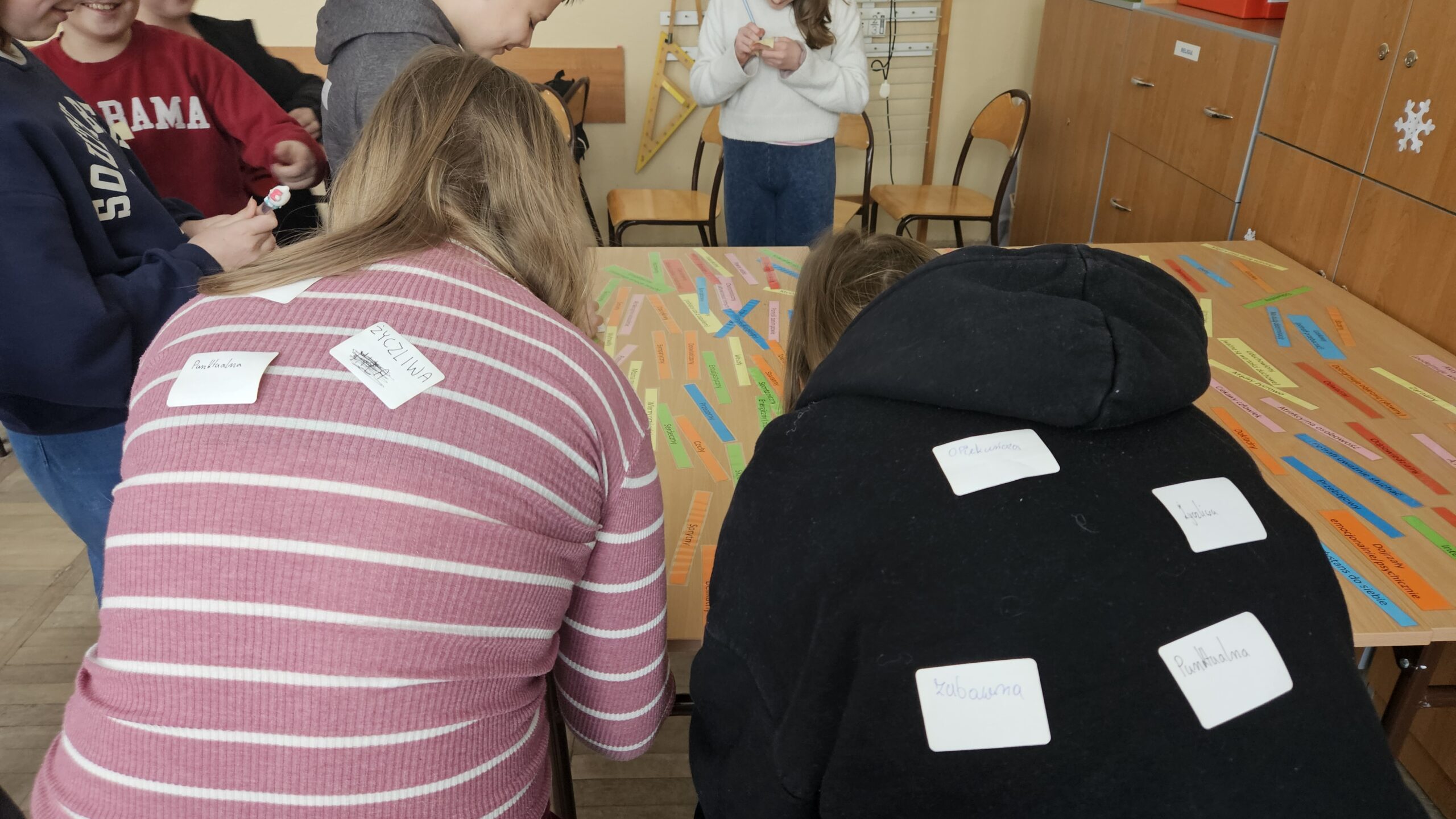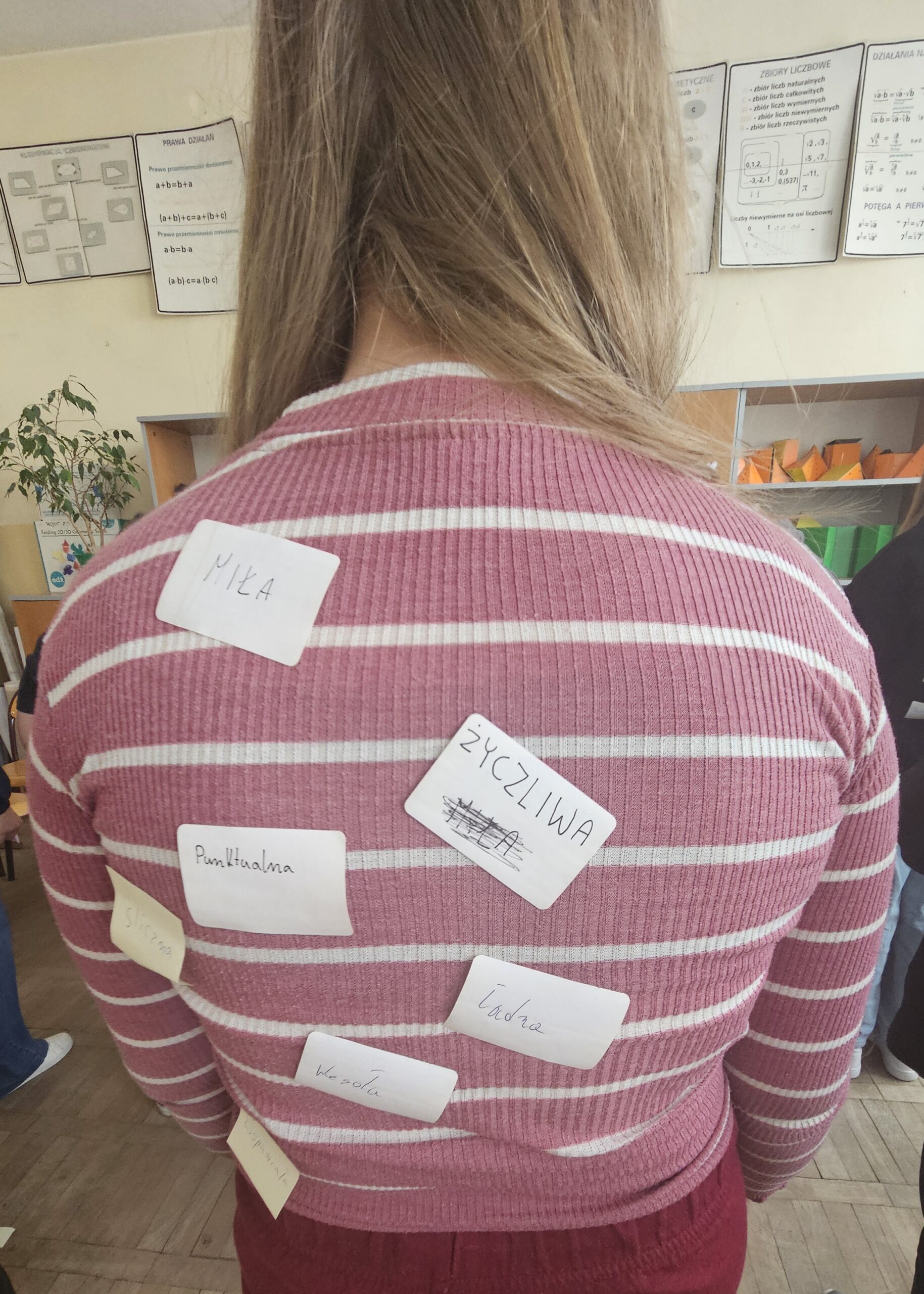 Za pomocą przyklejanych etykiet z zasobami, uczniowie dowiedzieli się, jak są postrzegani przez swoich kolegów i koleżanki z klasy, a także otrzymali pozytywne wzmocnienie, o którego istocie często zapominamy w porozumiewaniu się z innymi.