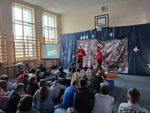 17.12.2025 nasza szkołę odwiedził WOPR z Grodziska Mazowieckiego Podczas spotkania klasy 4-8 dowiedziały się jak w bezpieczny sposób spędzać czas w okresie zimowym.