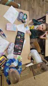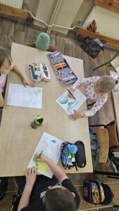 Dzieci ćwiczyły świadomy oddech, a także rozwijały wyobraźnię, dzięki wizualizacji. Na zakończenie spotkania, zaprojektowały własne świetlikowe łąki.🌳🧚🏽‍♀️🌿