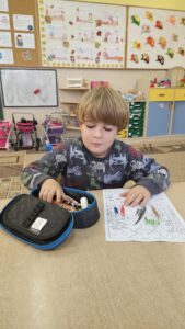 Klasa 1 oddała się natomiast ekspresji twórczej, malując kawałki mandala, w barwach emocji STRACHU.😱