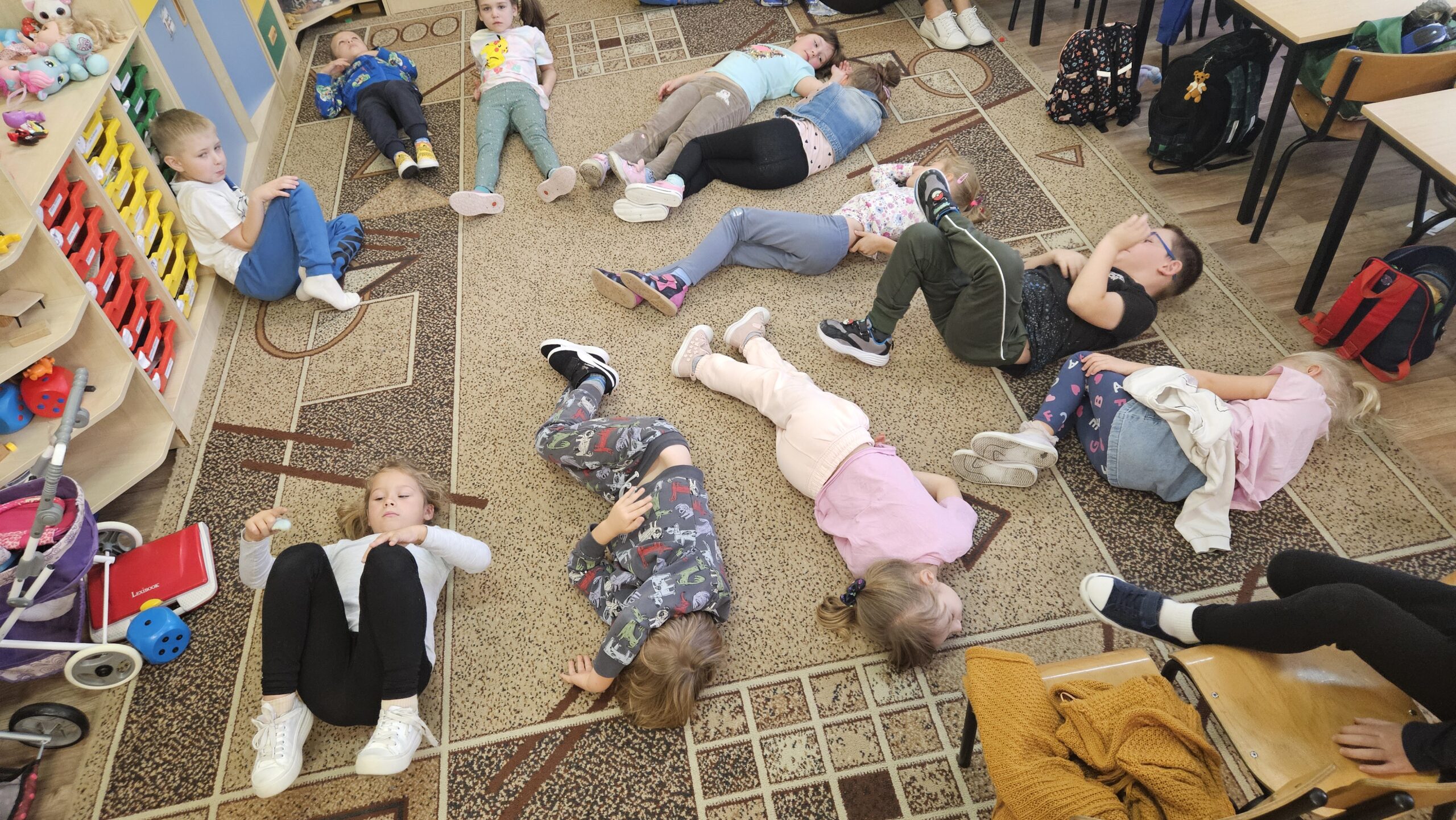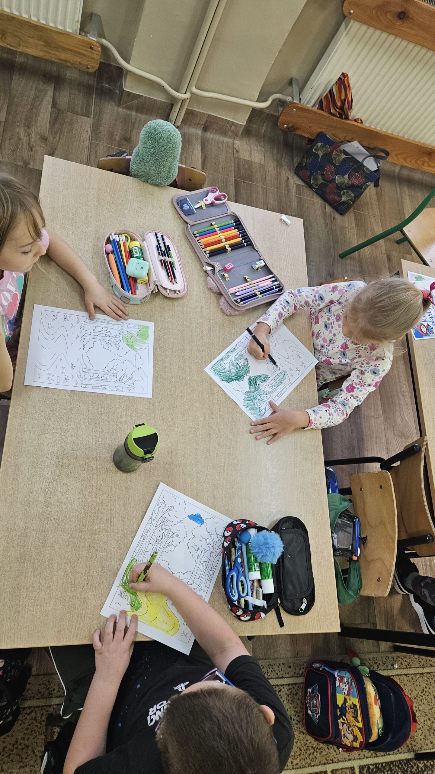 Dzieci ćwiczyły świadomy oddech, a także rozwijały wyobraźnię, dzięki wizualizacji. Na zakończenie spotkania, zaprojektowały własne świetlikowe łąki.🌳🧚🏽‍♀️🌿