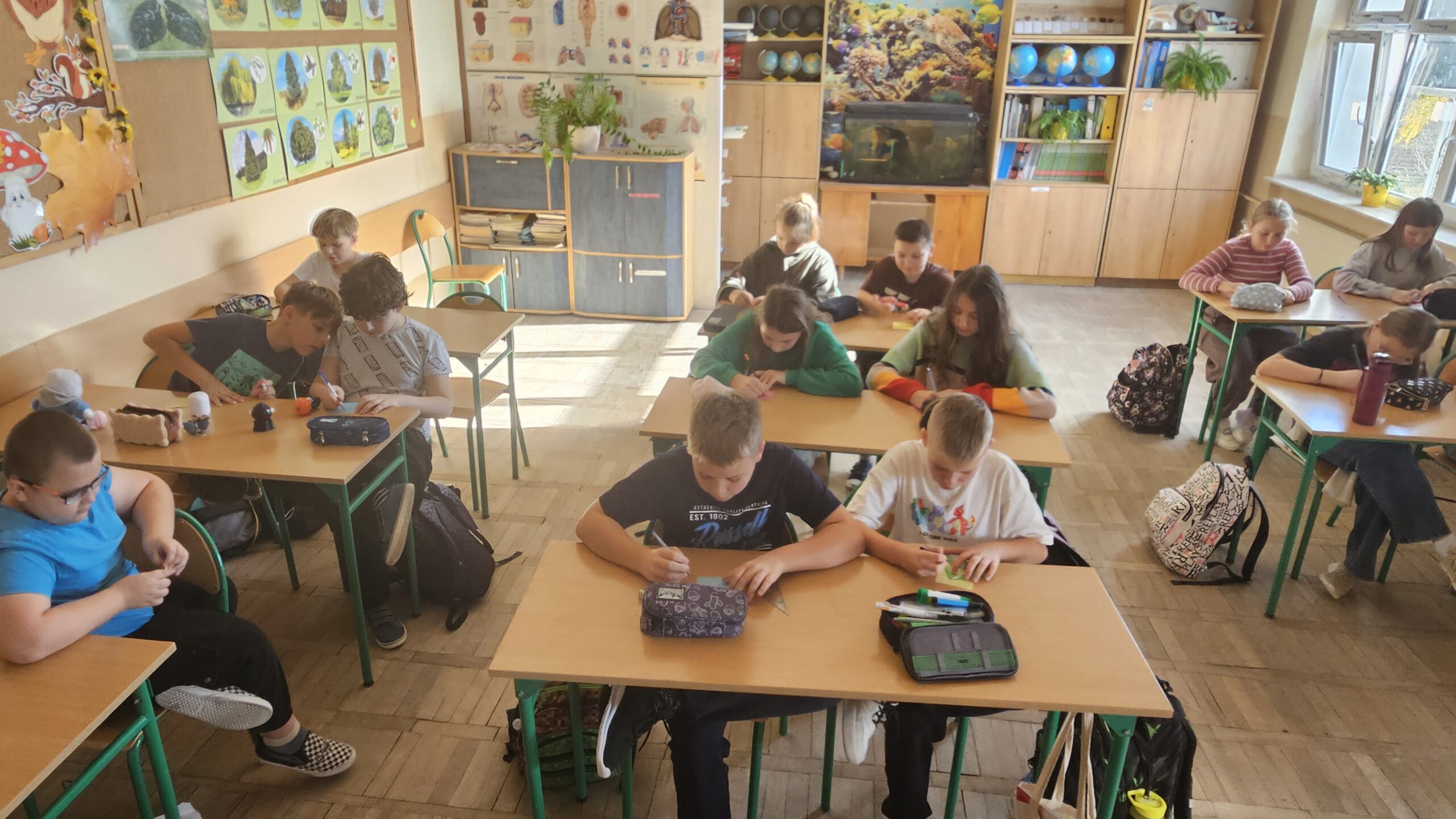 Klasa 1 oddała się natomiast ekspresji twórczej, malując kawałki mandala, w barwach emocji STRACHU.😱